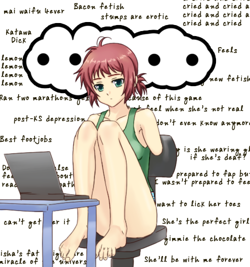 The waves of Katawa Shoujo's release splash have somehow lasted through the entire year. That there is an actual fandom spawned around KS is incredible, something not very many visual novels can claim, and we're happy and surprised to have so many people come to love it. Apart from the reactions of people, the emotional resonance and such, the things that have left an impression are the many new creative projects inspired by the Katawa Shoujo (as well as the direct fan creations), and the new fan communities spawned around the Internet. There has been lots of more personal communication as well. Many people wrote to us with stories of how KS struck a chord with them, but by far the biggest impact for me came from the comments of RAITA, the creator of the concept art that birthed the project. A few kind words about our perseverance and his satisfaction in the end result were enough to give me a feeling of validation beyond anything any other person could've given. It's funny, isn't it? With that, I felt the circle truly coming to a close.